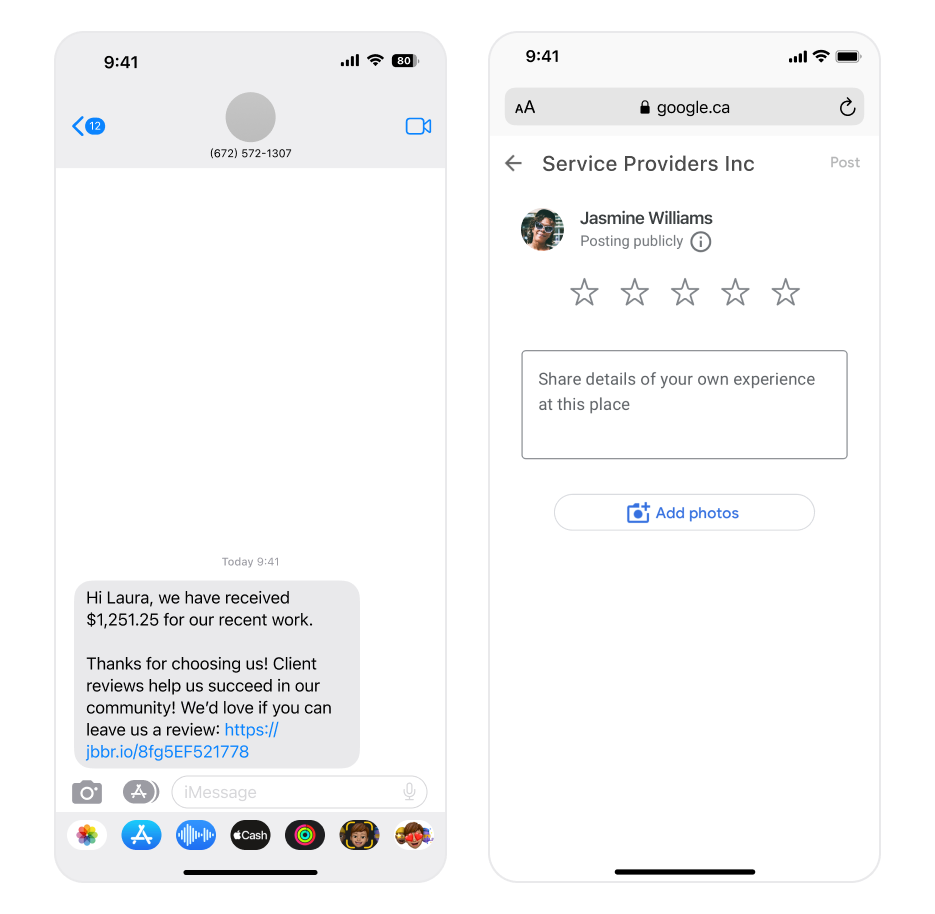 If your client doesn’t click the link in your initial review message, Jobber will automatically send up to two follow-up reminders: