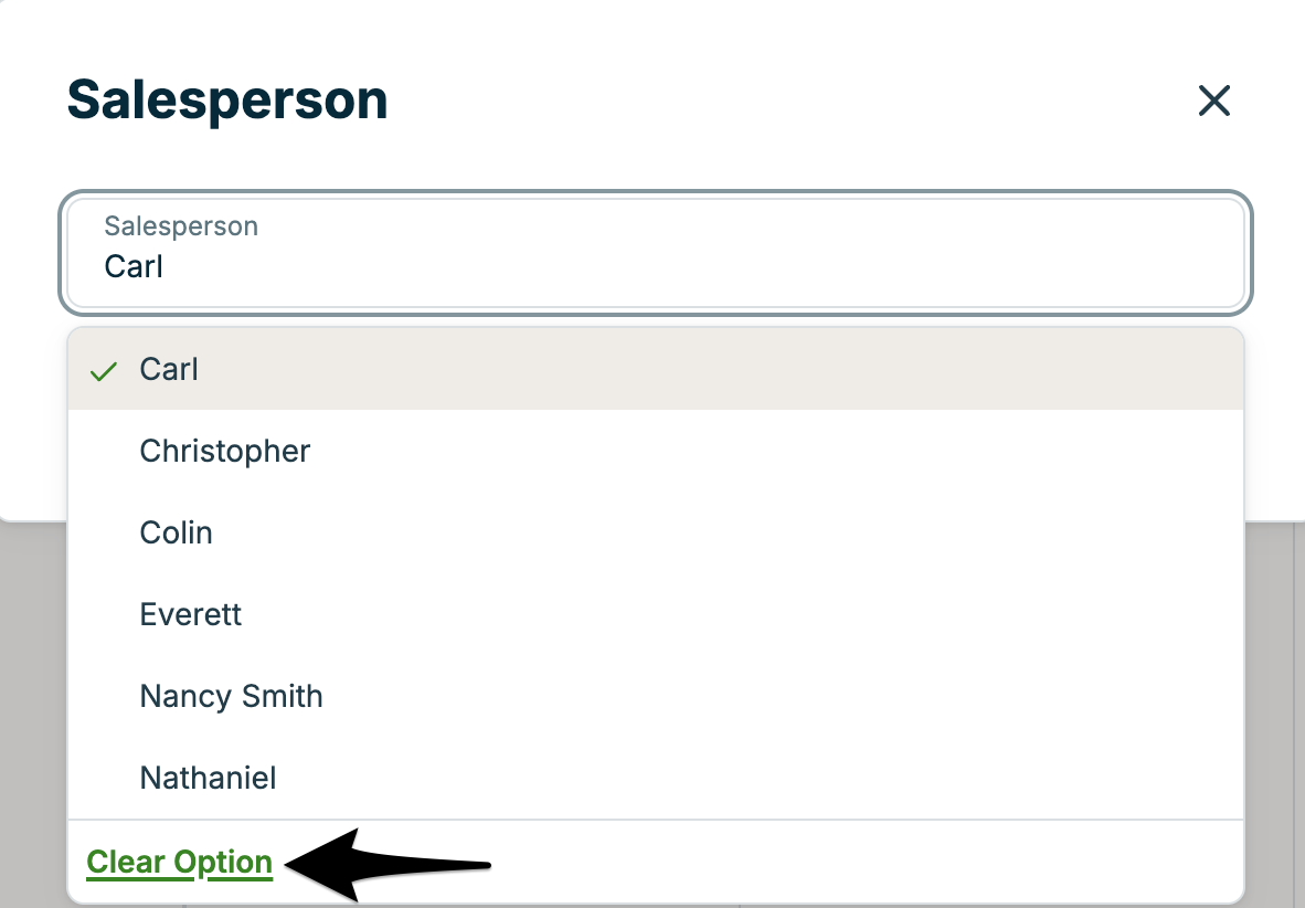 - From the dropdown menu, select Clear option to remove the salesperson from this opportunity.
