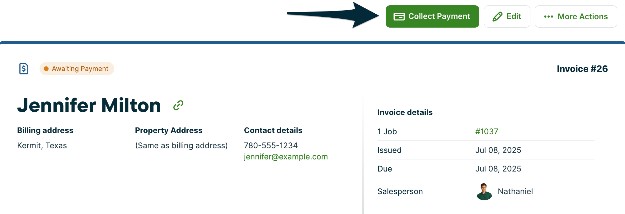 - In the top-right corner, click Collect Payment (next to the More Actions button).