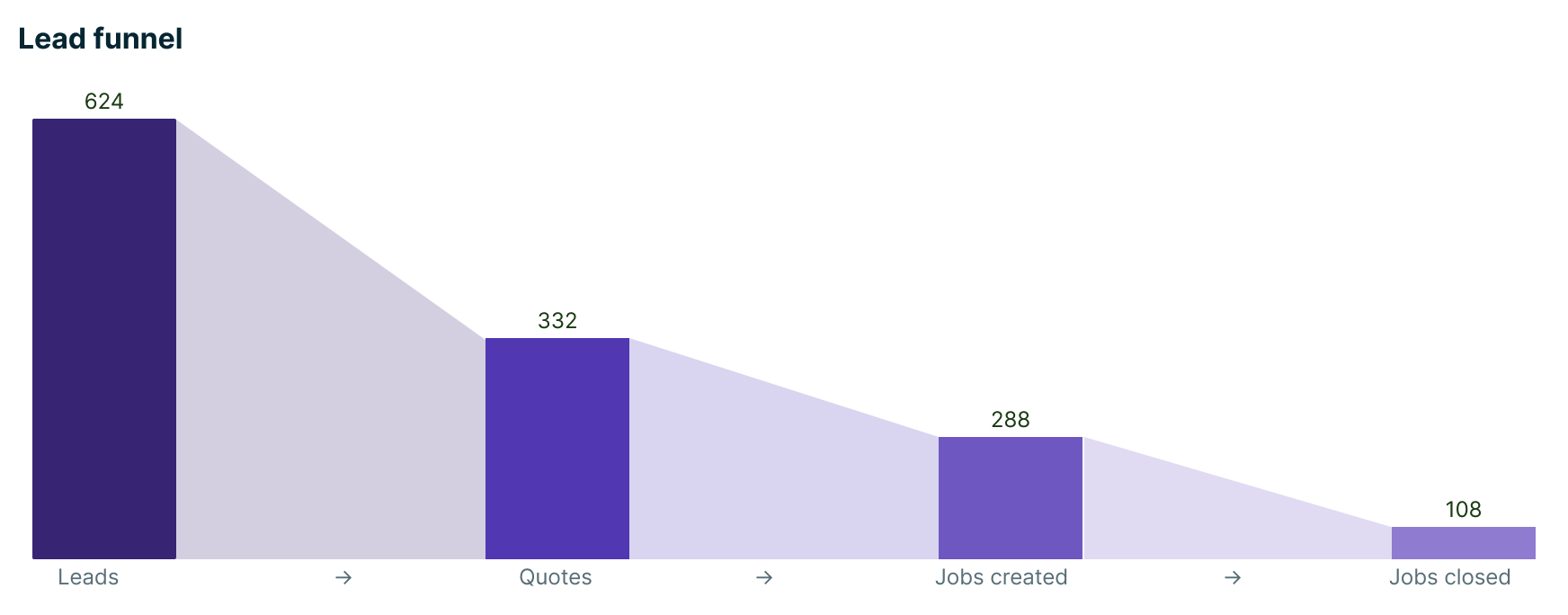 If a large number of leads are not progressing to quotes or jobs, it may indicate an opportunity to review quoting speed, follow-ups, or lead quality.
