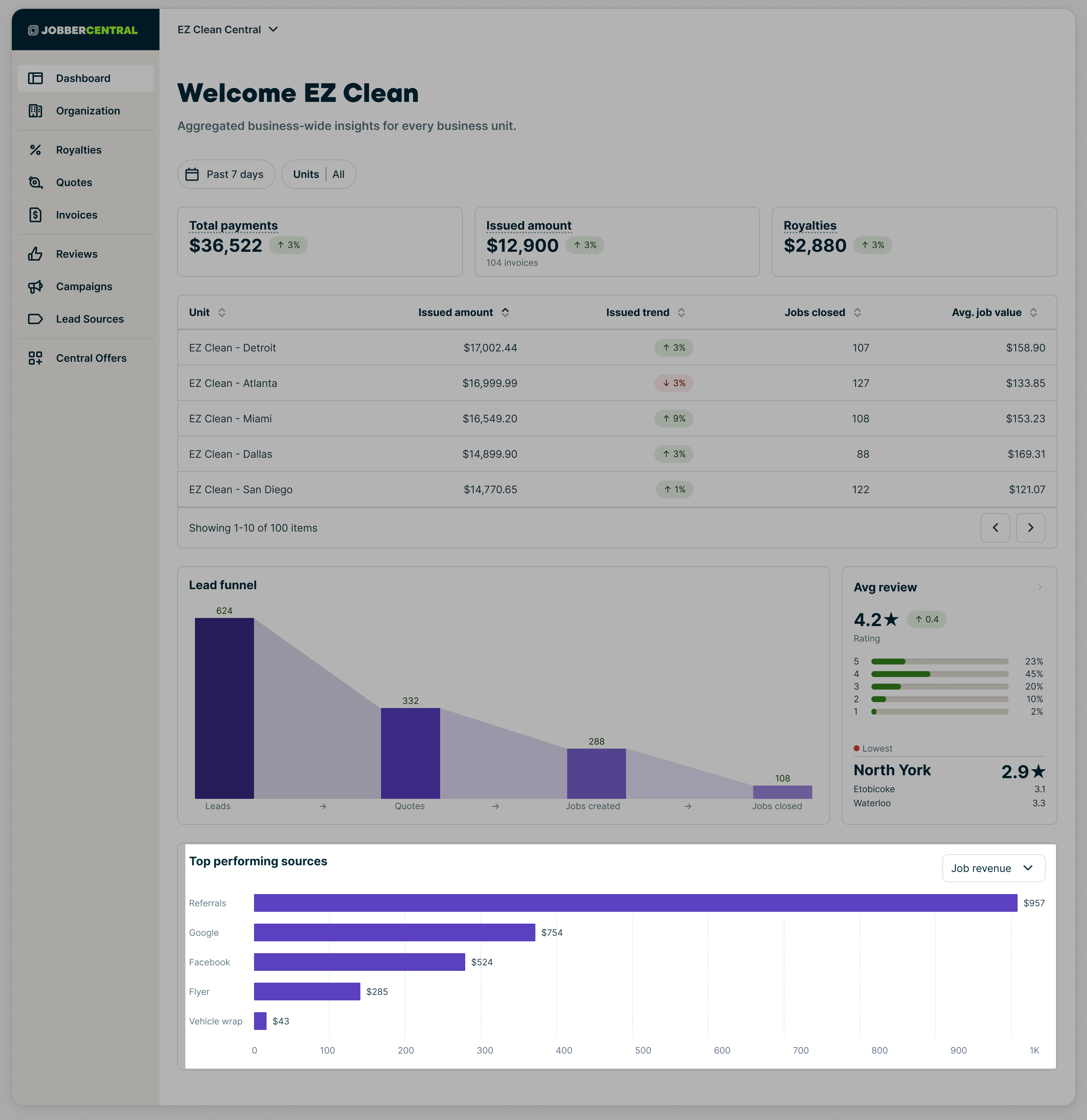 Top Performing Sources | Jobber Central Updated